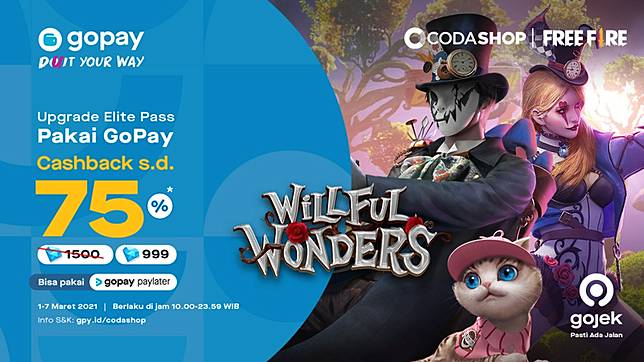 Codashop ff promo gopay. Top up FF pakai pulsa Telkomsel Indosat XL Tri Smartfren atau bayar menggunakan GoPay OVO ShopeePay Transfer Bank Indomaret Alfamart Kredivo LinkAja TrueMoney hingga DOKU Wallet. Top up FF di Codashop. Rp10000 dengan minumum pembelian Rp20000 aja dan kalo kamu pengguna baru Gopay di Codashop kamu bisa dapetin potongan harga sd Rp15000 untuk minimal pembelian Rp50000 loh.