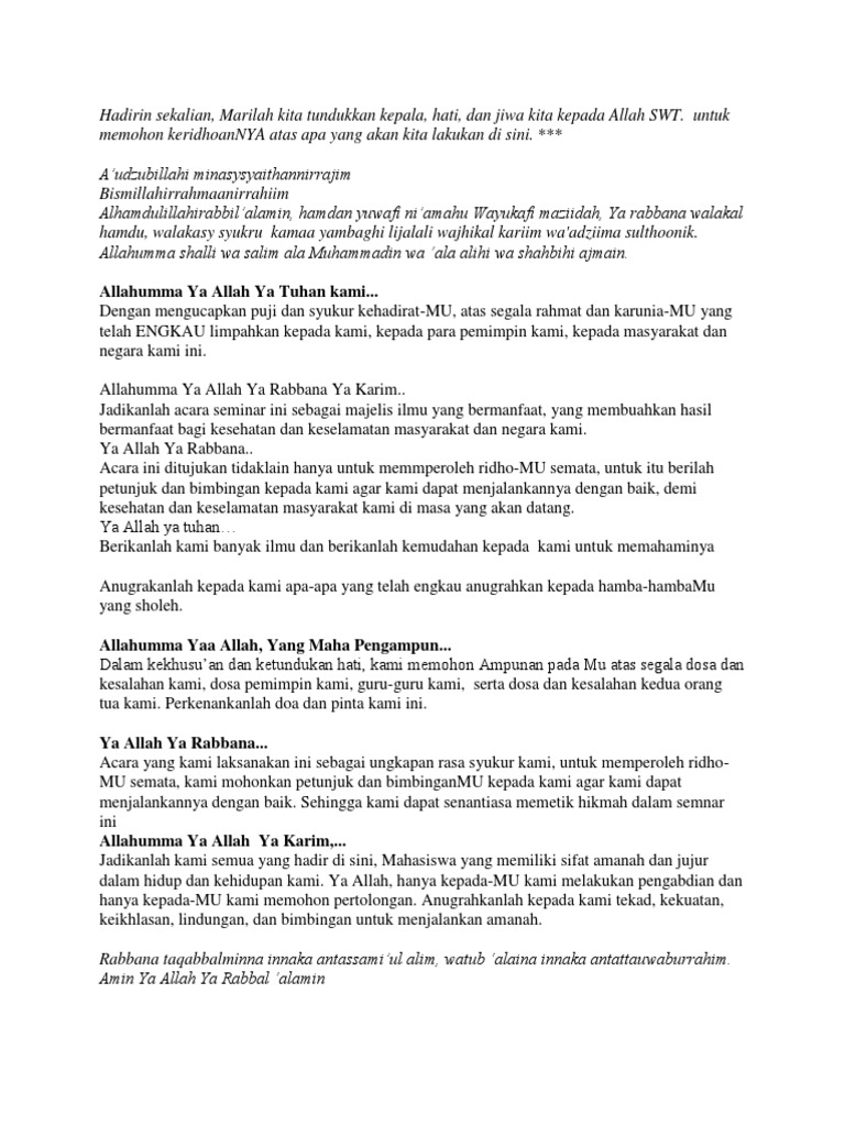 Doa Acara Perkenalan Perpisahan. Ampunilah dosa-dosa kami ya. Ya Allah ya tuhan kami Pada hari ini kami melaksanakan kegiatan pelepasan dan perpisahan mahasiswa PPL Universitas Jambi tahun akademik 20152016 di SMK Negeri 1 Kota Jambi.
