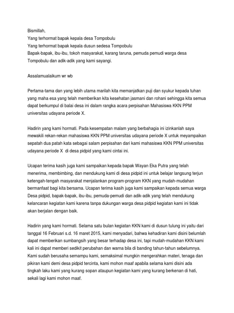 Contoh Kata Sambutan Ketua Panitia Perpisahan Kkn