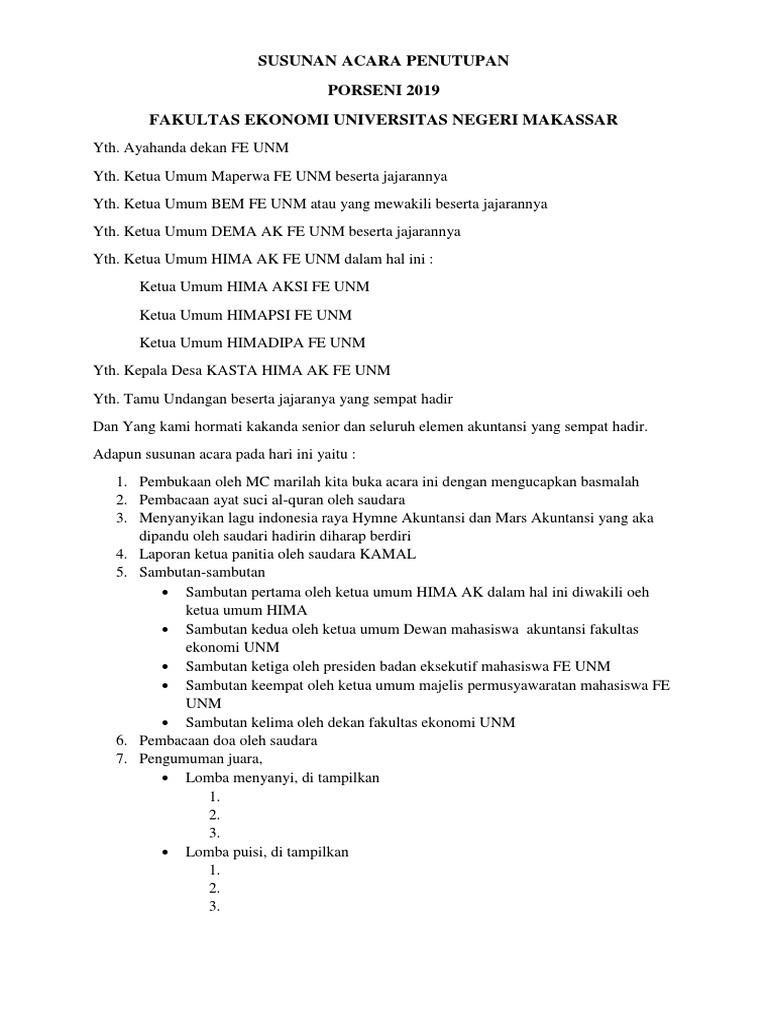 Doc Susunan Acara Penutupan Muhammad Sutekad Academia Edu