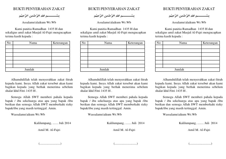 Contoh Surat Penerimaan Zakat Contoh Surat Terbaru