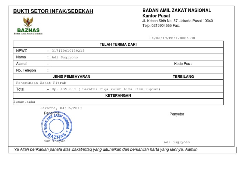 Contoh formulir penerimaan zakat fitrah doqumen cute766. Hasil pandangan dari berbagai unsur terkait dalam rapat pleno tersebut sepakat menetapkan besaran nilai beras untuk standar pembayaran zakat fitrah tahun 1442 H 2021 M sebesar 25 kg beras per jiwa atau bila diganti dengan uang ditetapkan sebesar Rp. Lakukan Transfer Dana Zakat dan Kirim Bukti Pengiriman.