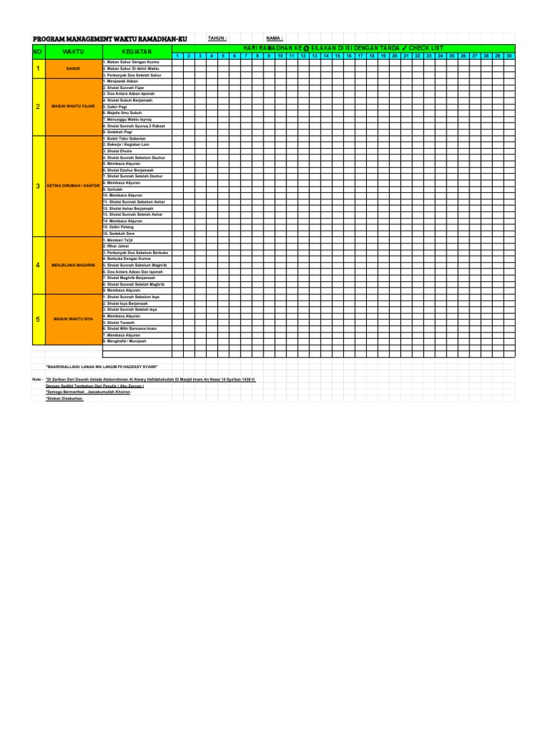 Contoh Tabel Perencanaan Bulan Ramadhan Brainly Co Id