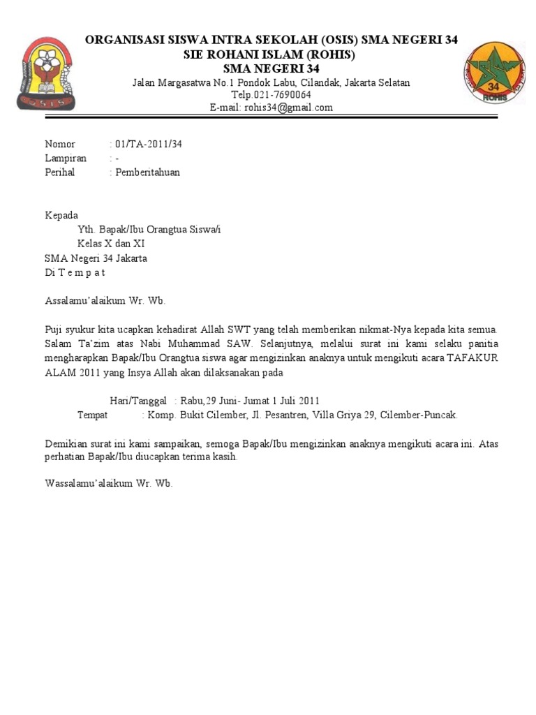 Ekstrakulikuler Rohani Islam ROHIS merupakan salah satu organisasi yang bergerak di bidang religius yang dilestarikan dan dikembangkan melalui pembelajaran-pembelajaran yang bersifat keagamaan. Dimana surat ini pada umumnya untuk memberitahukan kepada semua orang atas kegiatan yang akan diadakan. Tapi sebelum menguraikan program kerja pengurus ROHIS kudu membuat beberapa departemen dan atau biro yang bisa mengelolah program kerja tersebut.