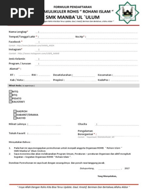 Contoh Formulir Pendaftaran Organisasi Rohis Materi Pelajaran 7