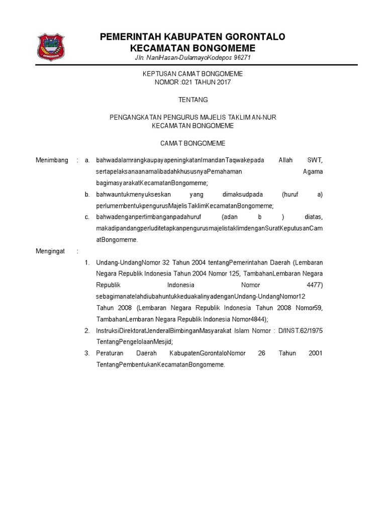 Contoh Surat Keputusan Pengangkatan Pengurus Masjid Kumpulan Surat Penting