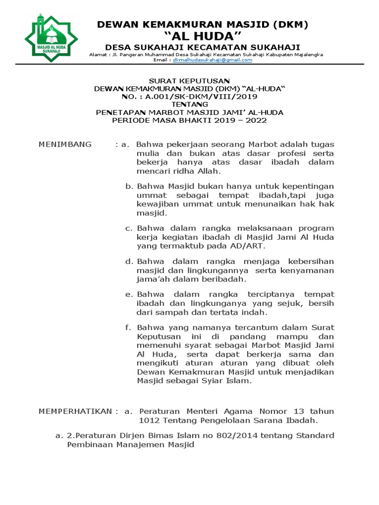 Contoh SK DKM BKM. Bahwa untuk meningkatkan kualitas Sumber Daya Insani Indonesia melalui Masjid sangat diperlukan agar masyarakat memiliki pengetahuan agama. Contoh sk dkm masjid.