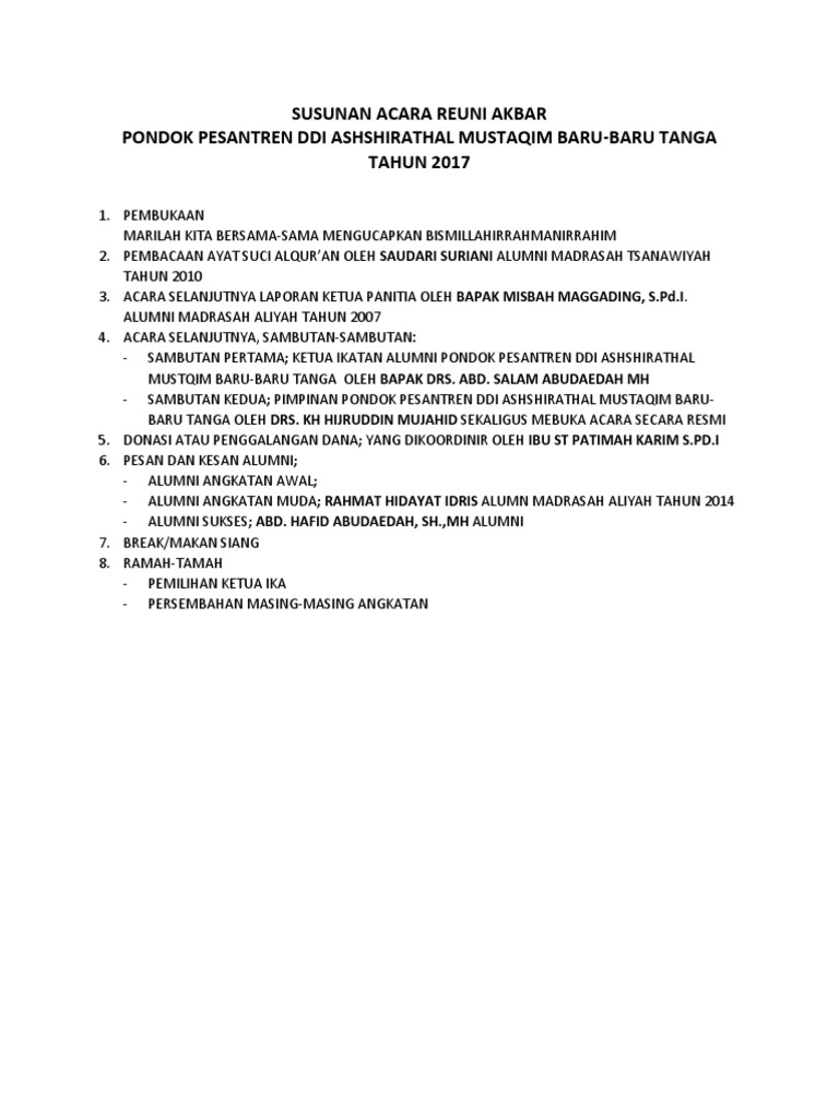 Susunan Acara Reuni Alumni Ikpt Docx Docx Document