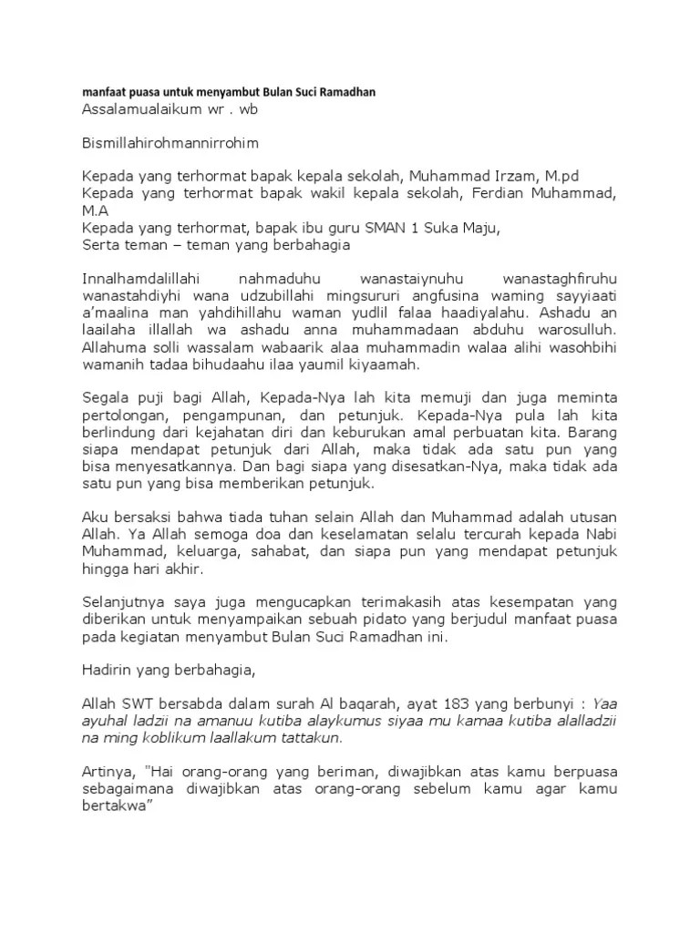 Contoh Teks Pidato Menyambut Bulan Suci Ramadhan Docx.