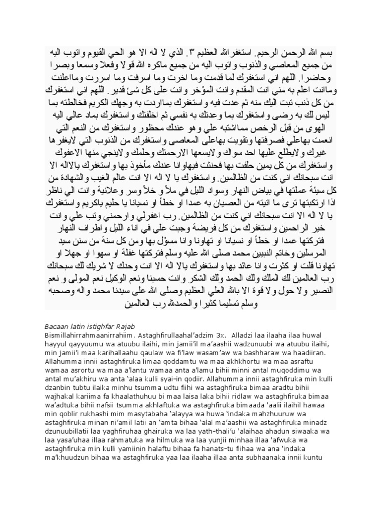Doa Istighfar Rajab Dan Latinnya