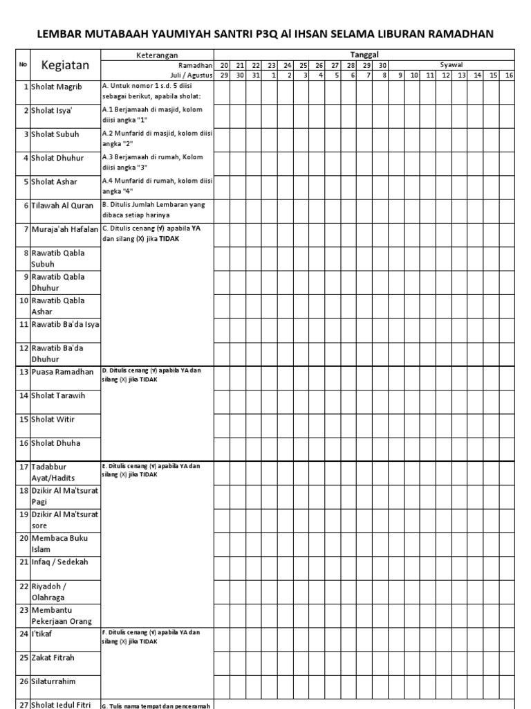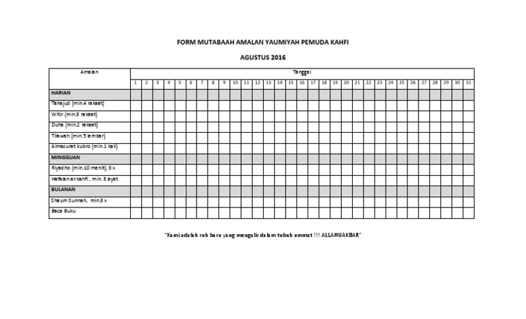 Form Mutaba Ah Yaumiyah Di Bulan Ramadhan Cuma Copy Paste