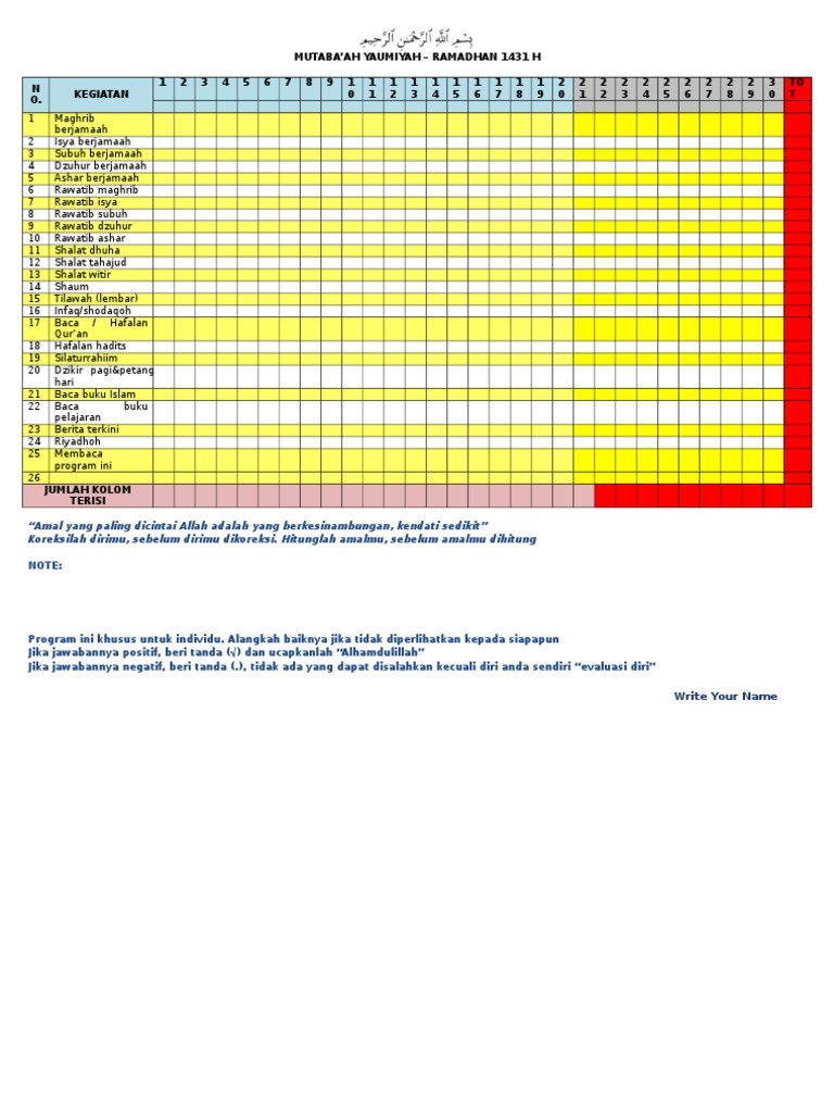 Lembar mutabaah yaumiyah ramadhan. Hal yang menarik lainnya petugas puasa sunnah juga bertugas. This entry was posted in ambil hikmahnya ya Tips and tagged Mutabaah Yaumiyah puasa Ramadan ramadhan taraweh. Salah satu hal menarik dalam mutabaah yaumiyah adalah puasa sunnah.