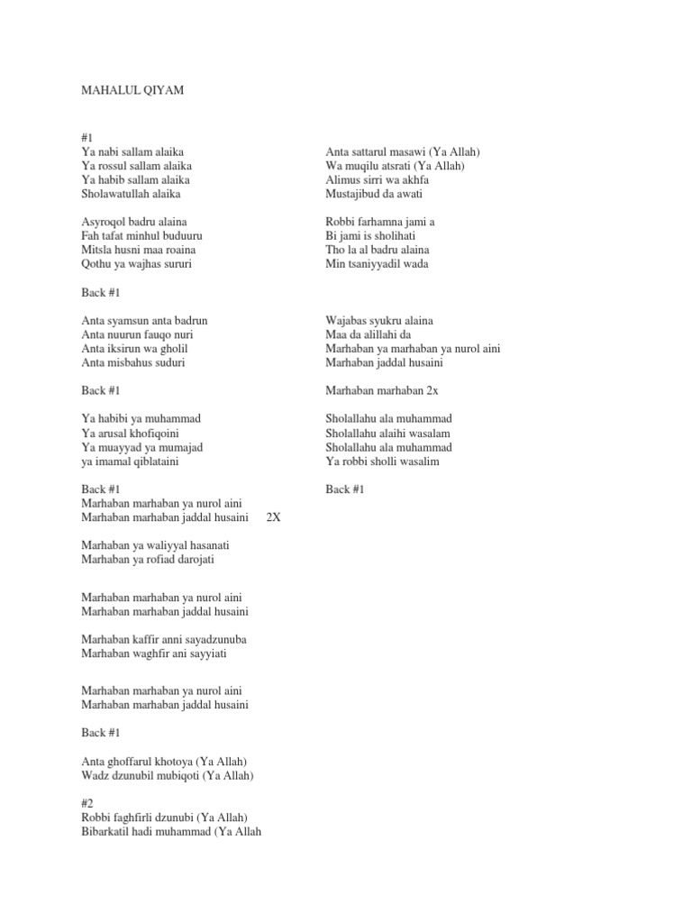 Lirik Sholawat 21 Mahalul Qiyam Wattpad