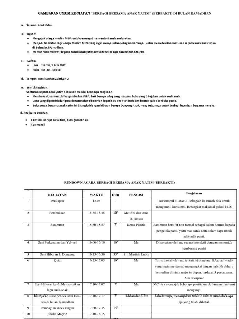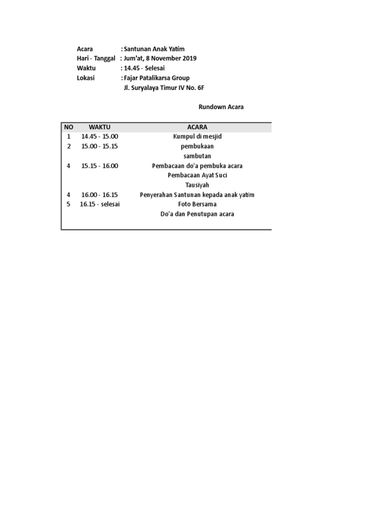 Teks Susunan Acara Santunan Anak Yatim Berbagai Teks Penting Cute766