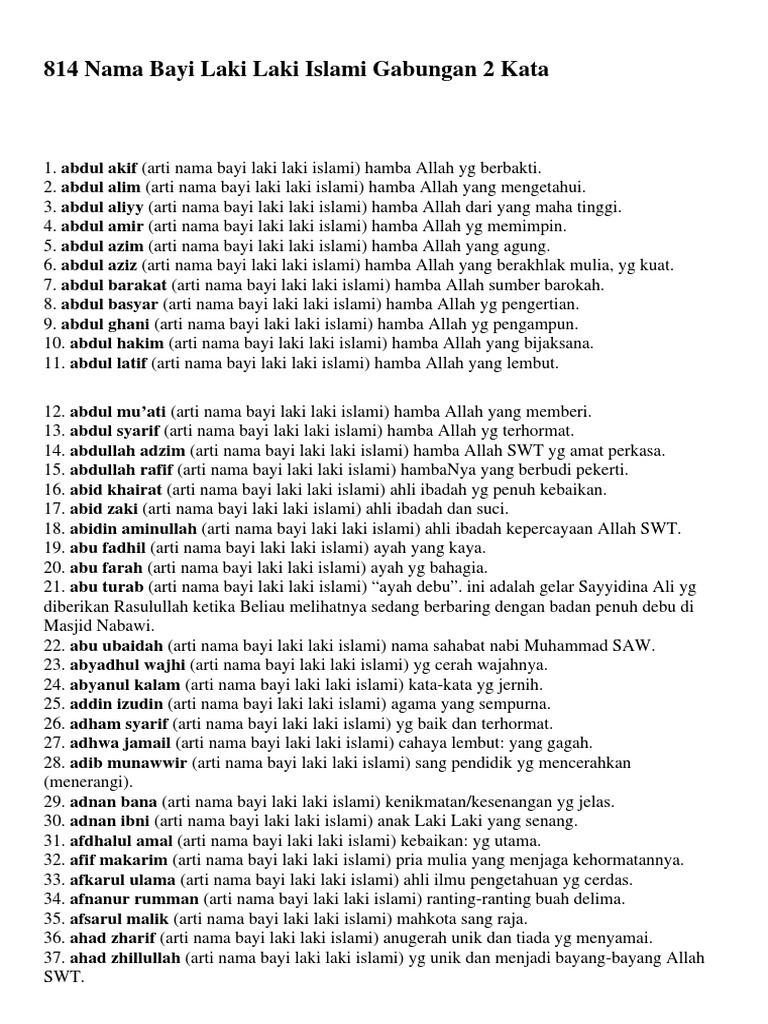 Pdf Kumpulan Nama Nama Bayi Nama Nama Bayi Laki Laki Imdadur Rohman Academia Edu