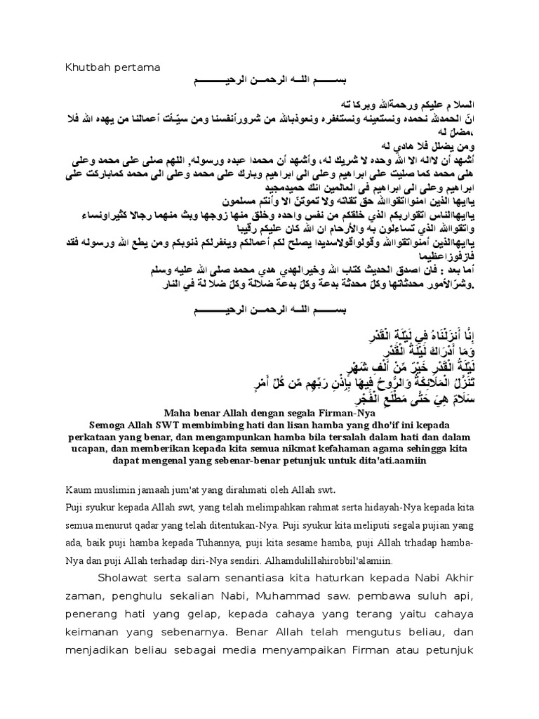 Bacaan Khutbah Jum At Tulisan Arab Tulisan Membaca Jumat