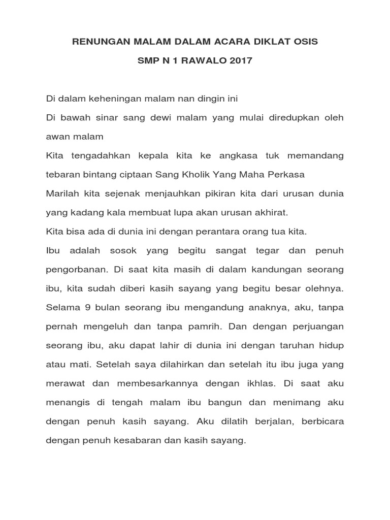 Teks renungan malam tentang dosa. Lirik mazmur pujian Doa pada malam hari yang direkam dalam Kitab Mazmur 41-8 memberi kita banyak didikan ajaran dan nasihat untuk melakukan doa malam sebelum tidur. Teks-teks atau Purana yang menjadi landasan perayaan Siwaratri cukup beragam seperti Padma Purana Siwa Purana Siwaratrikalpa dan sebagainya. Malam Siwaratri merupakan momen introspeksi diri guna menyadari perbuatan-perbuatan dosa atau kekeliruan selama ini.