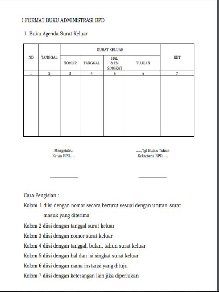 Format Buku Agenda Surat Keluar Bpd Pdf