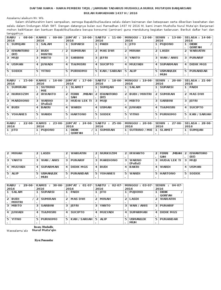 Doc Contoh Jadwal Konsumsi Tadarus Putri Docx Tathiannet Student Class Academia Edu