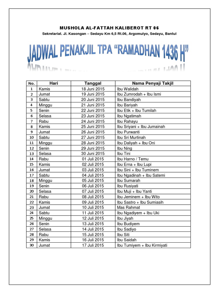 Contoh Jadwal Takjilan Dan Jaburan Di Bulan Puasa Ramadhan