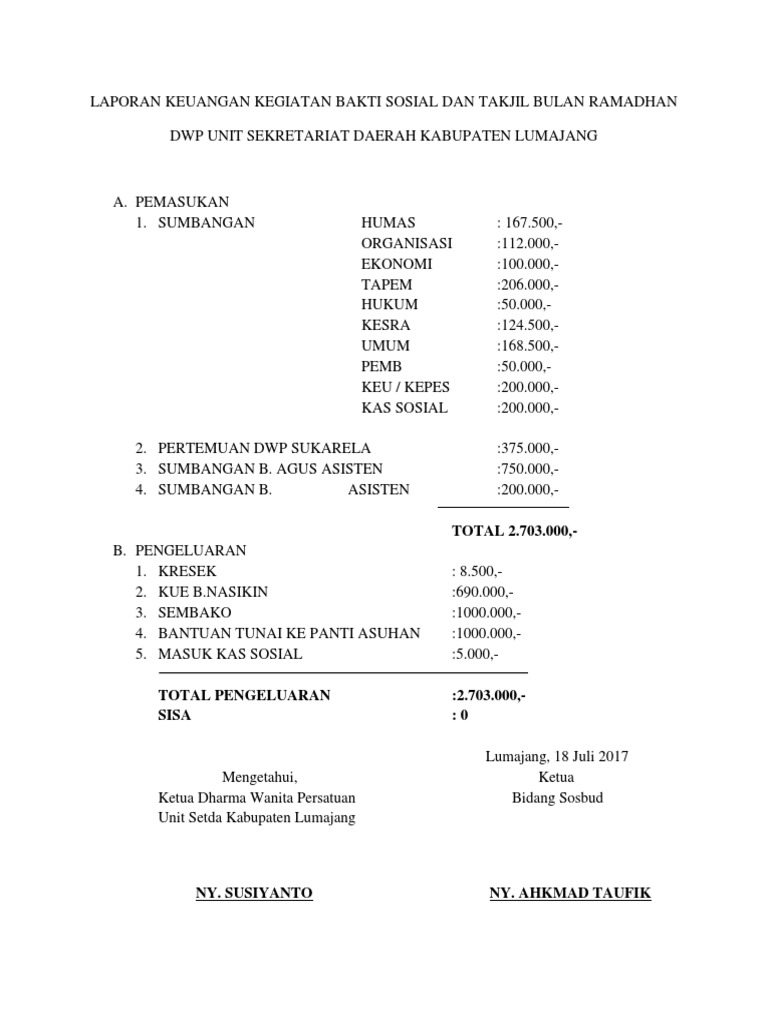 Contoh Laporan Keuangan Kegiatan Sederhana Seputar Laporan Iic Format Penyusunan Rkab Tahunan Iup Operasi Produksi Reedit Contoh Laporan Pertanggungjawaban Lpj Kegiatan Terbaik. Contoh sk panitia pondok ramadhan mi mts ma mak. Program kegiatan Ramadhan ini di susun oleh Panitia pelaksana kegiatan Ramadhan tahun 20102011 Hdimaksudkan untuk mengisi kegiatan bulan suci Ramadhan dengan berbagai aktifitas yang ada erat kaitannya dengan amalan-amalan pada bulan shaum dan dalam rangka meningkatkan keimanan dan ketakwaan terhadap Allah SWTProgram ini juga merupakan acuan pelaksanaan kegiatan agar lebih.