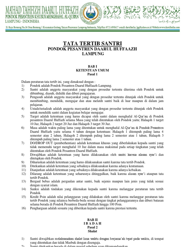 Contoh Tata Tertib Pondok Pesantren Putri. Pada bulan Ramadhan pesantren salaf biasanya mengadakan khataman kitab-kitab kuning dengan sistem kilat sehingga kitab tebal seperti. Mengikuti seluruh kegiatan yang telah di tetapkan pondok.