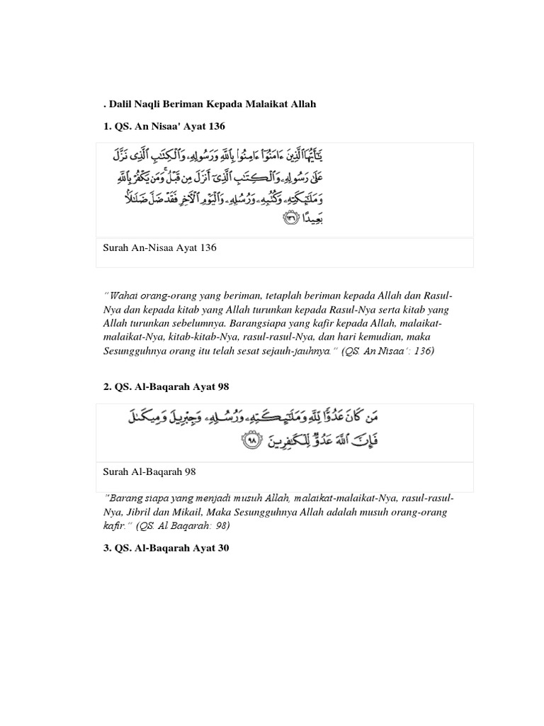 Dalil Naqli Beriman Kepada Malaikat Allah