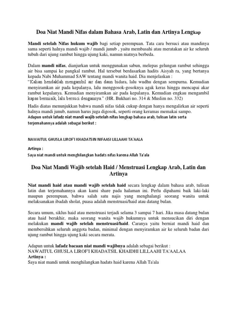 Doa Niat Mandi Nifas Dalam Bahasa Arab Docx