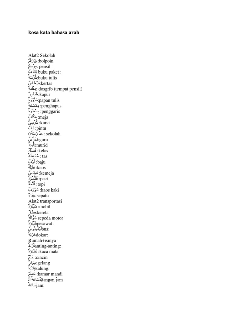 Kosakata Bahasa Arab Indonesia Posts Facebook