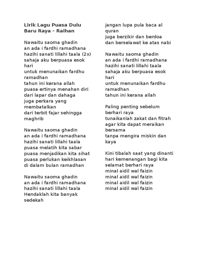 Dengan penuh cinta jemput indah ramadhan. Penuh bahagia menanti karna cinta Ramadan kurindu untuk bertemu Siapkan hatiku juga hatimu Ramadan kurindu untuk bertemu Dengan penuh cinta Jemput indah ramadan. Itulah lirik lagu ramadhan kurindu dna aditya yang dapat admin kumpulkan.