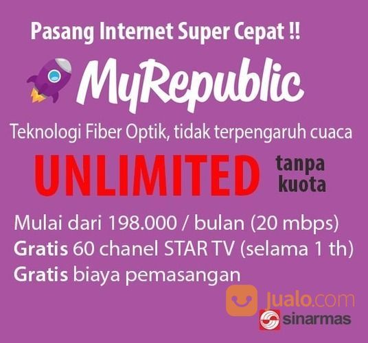 Ultra-fast Fiber Unlimited Internet Package Register now and enjoy unlimited MyRepublic internet speeds. MyRepublic harga mulai 200an speed hingga 300Mbps. MyRepublic Surabaya sidoarjo Surabaya Indonesia.