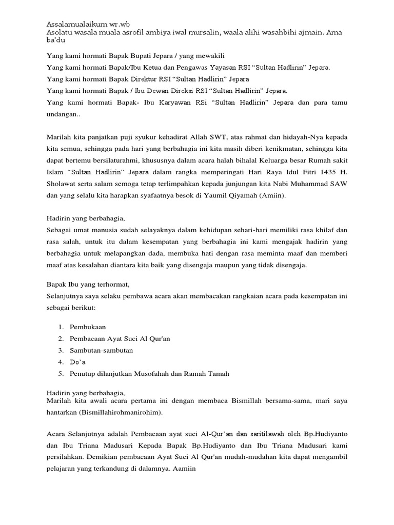Doc Teks Mc Acara Halal Bihalal Riani Prihatiningsih Academia Edu