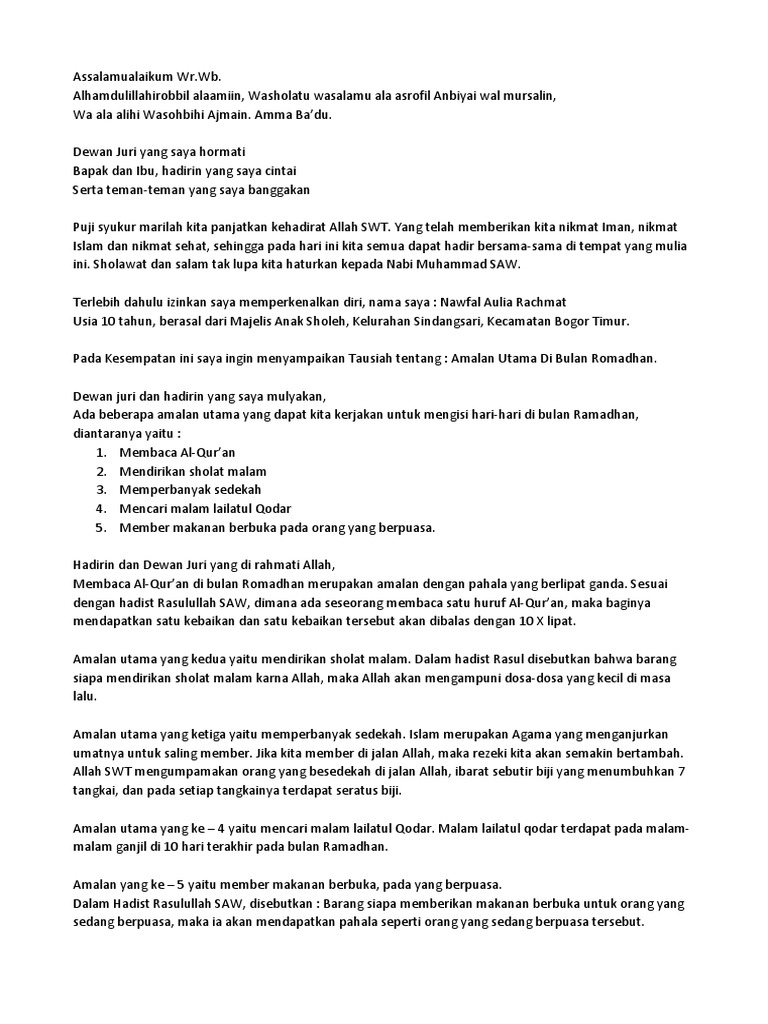 Contoh Pidato Anak Sd Tentang Bulan Ramadhan Contoh Soal Dan Materi Pelajaran 3