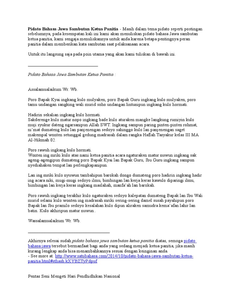Contoh Teks Pidato Bahasa Jawa Ketua Panitia Kumpulan Referensi Teks Pidato