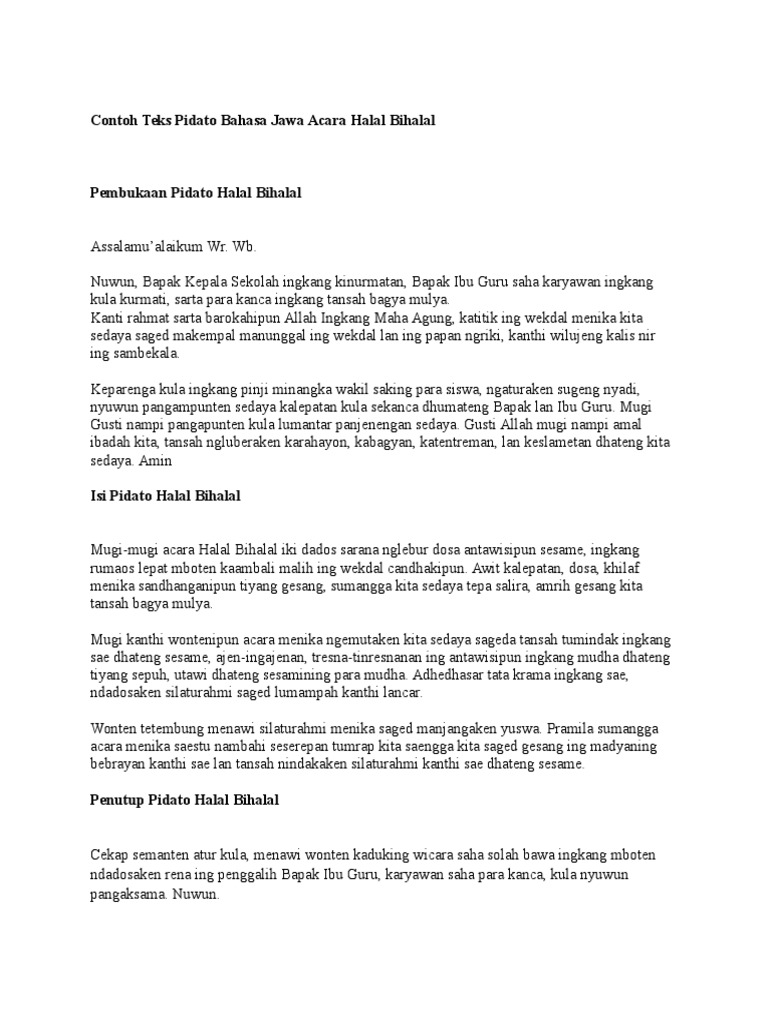 Kumpulan Teks Pidato Bahasa Jawa Halal Bihalal Kumpulan Referensi Teks Pidato
