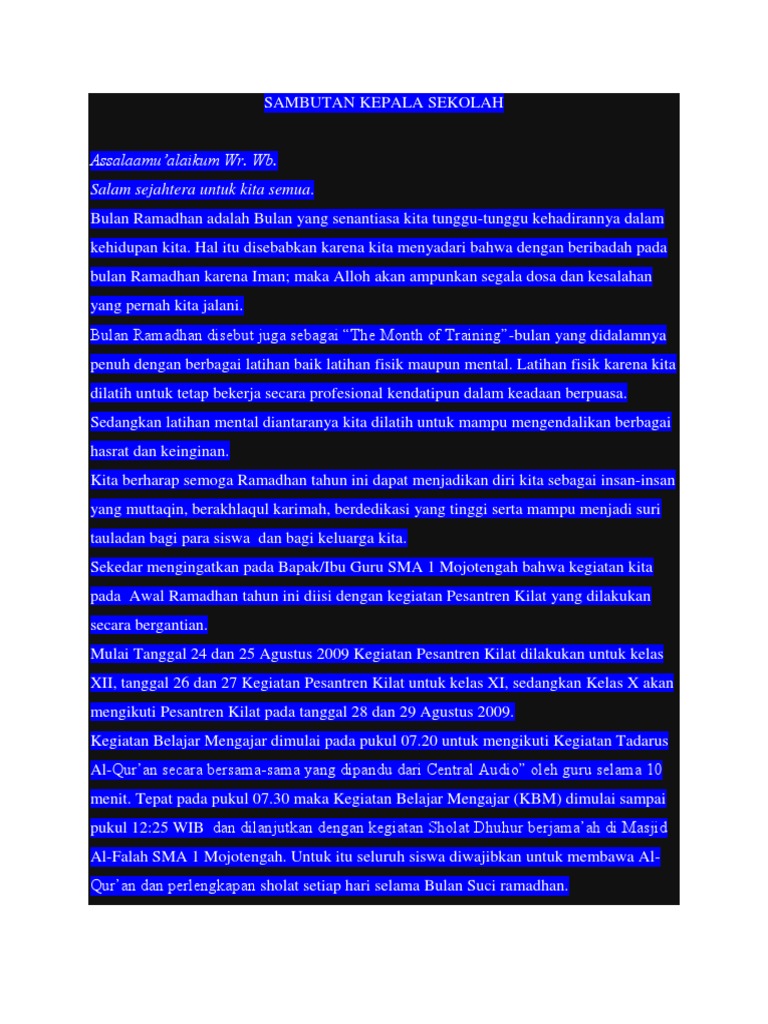 Pidato Menyambut Bulan Suci Ramadhan - Kali ini admin postingkan contoh pidato menyambut bulan suci ramadhan silahkan simak di bawah ini. Mohamad Fadzli bin Khamis pelajar PISMP 806 Pengajian Bahasa Melayu IPG. Telah usai dengan peserta kurang lebih 1061 dari keseluruhan data yang tercatat di lembaga-lembaga naungan Pesantren Fathul Ulum meliputi.