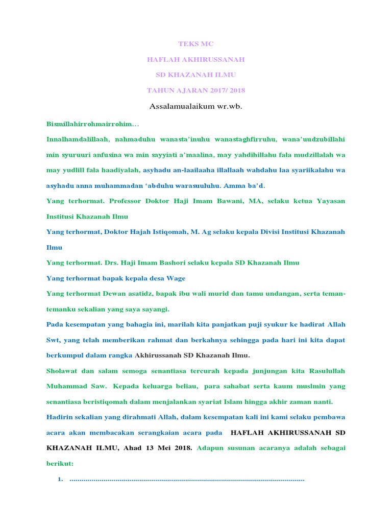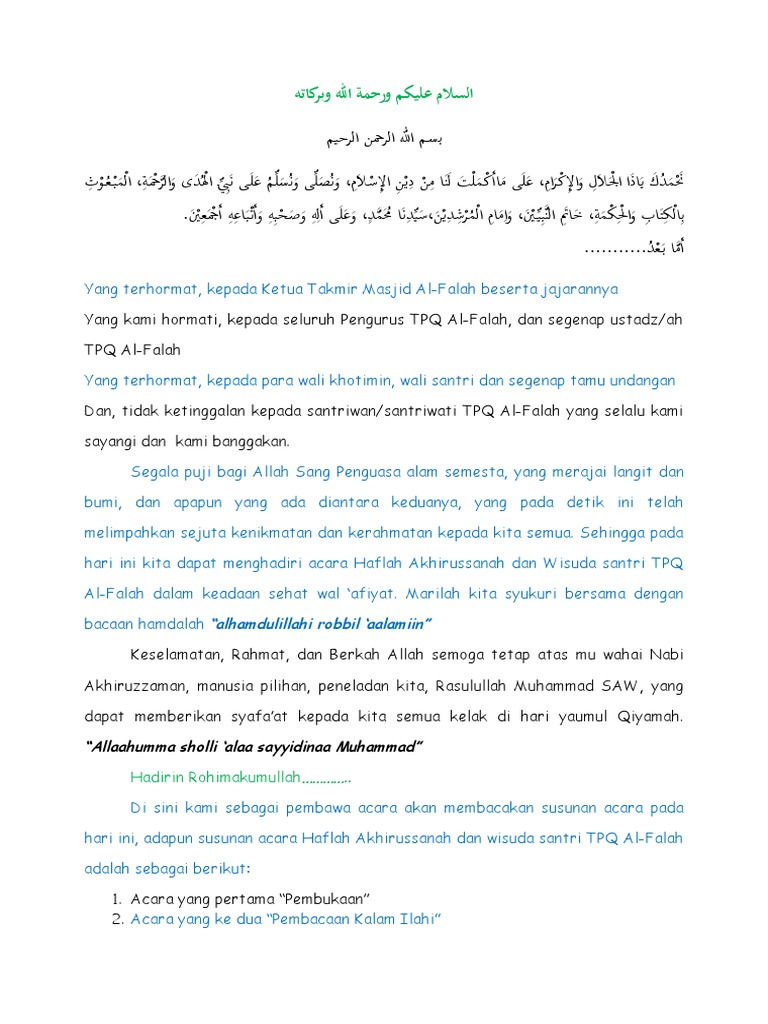 Contoh Teks Mc Haflah Akhirussanah Pondok Pesantren Majelis Ta Lim Tpq Mas Roziq Blog