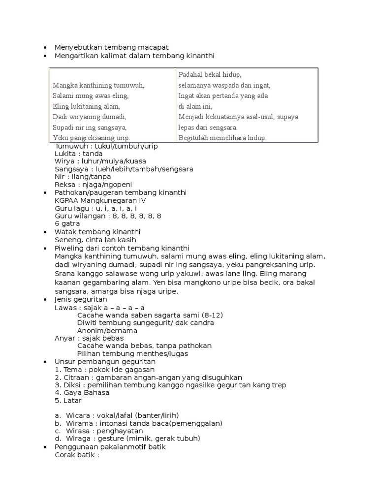 Contoh Soal Bahasa Jawa Tentang Tembang Kinanthi Soal Kelasmu