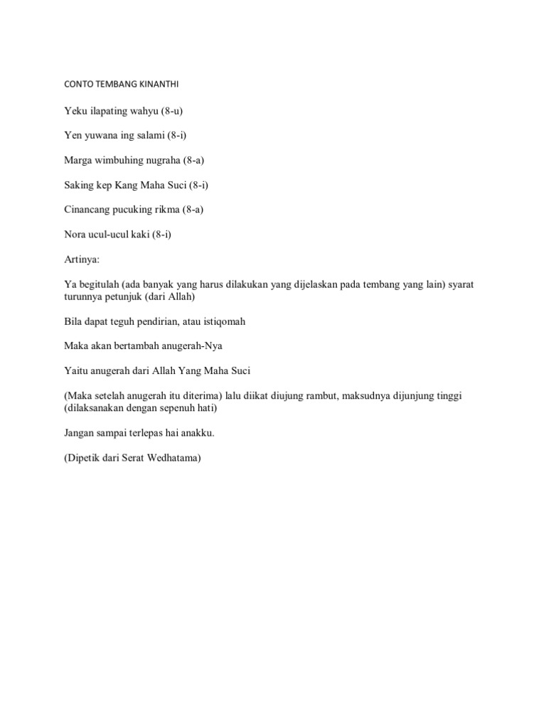 Contoh Tembang Macapat Kinanthi Dan Artinya Contoh Ian Cute766