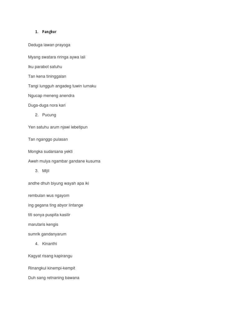 Tembang Macapat merupakan salah satu lagu daerah yang sangat populer dan dibanggakan para pelestari budaya. Tembung Kinanthi iki banjur bisa ditegesi digandheng Saputra 200141. About Press Copyright Contact us Creators Advertise Developers Terms Privacy Policy Safety How YouTube works Test new features Press Copyright Contact us Creators.