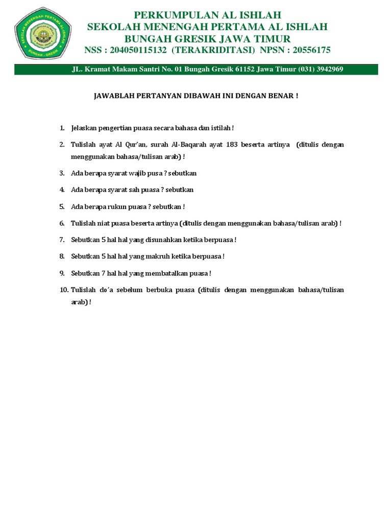 1 Jelaskan Pengertian Puasa 2 Tuliskan Dalil Tentang Puasa Ramadhan Beserta Artinya Memakai Huruf Brainly Co Id