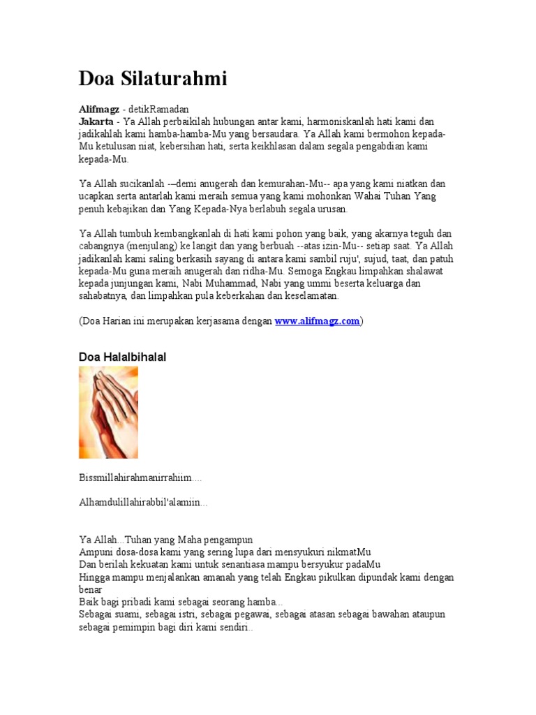 Unknown 7 Juli 2017 1557. Doa Halalbihalal dapat berupa doa singkat atau doa panjang dan lengkap. Mohon izin mengcopy doanya sangat mengena.