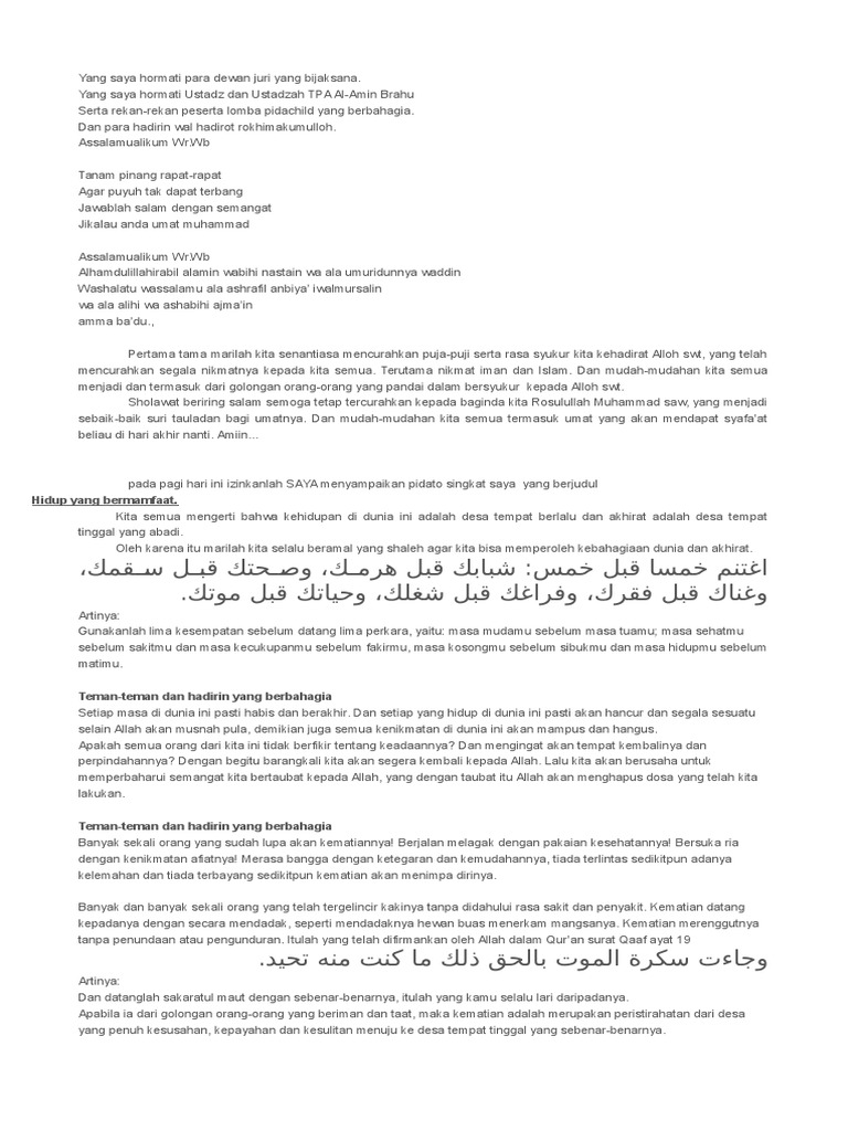 Ceramah pildacil tentang ramadhan. Dalam buku Fikih Zakat Sedekah. Sekian yang saya sampaikan ini semoga bermanfaat untuk sahabat muslim sekalian. Itulah ceramah singkat tentang kematian yang dimana kematian bisa menjadi obat dalam hidup di dunia.
