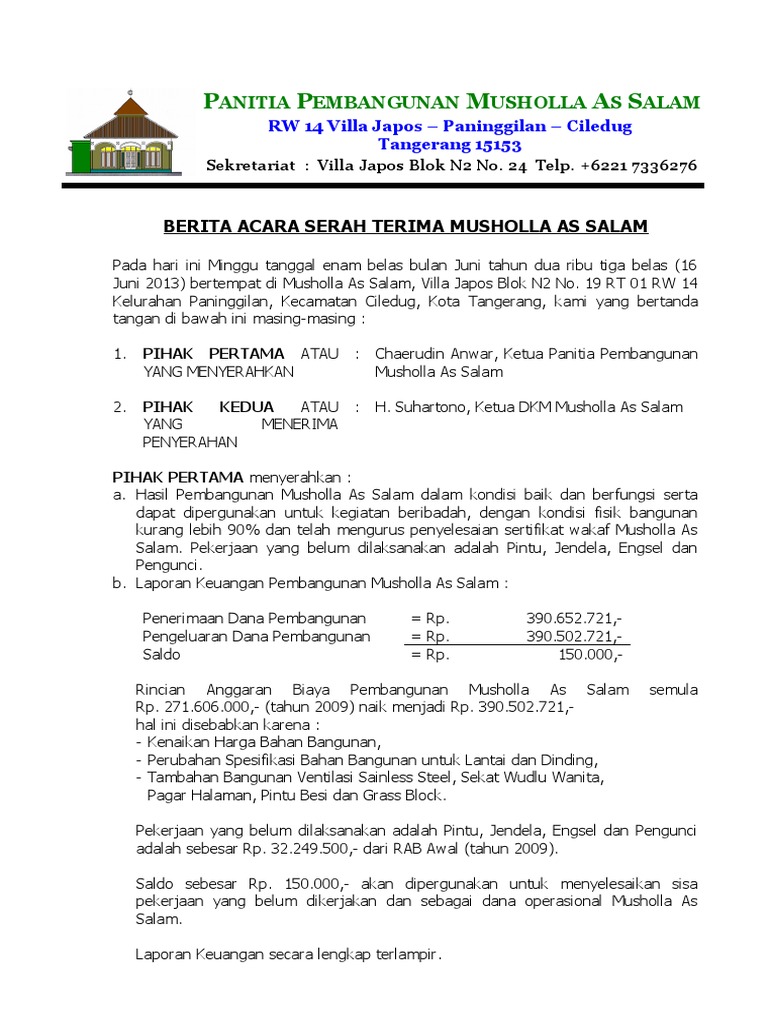 Laporan Pertanggung Jawaban Panitia Phbi Idul Adha 1437 H 2016 M Musholla Nurul Jannah Pdf Free Download