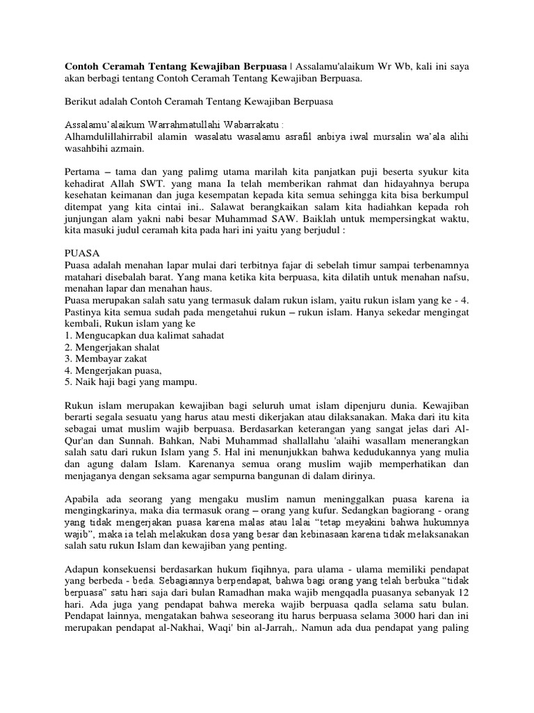 Contoh Pidato Tentang Puasa Wajib Berserta Ayat Nya Brainly Co Id