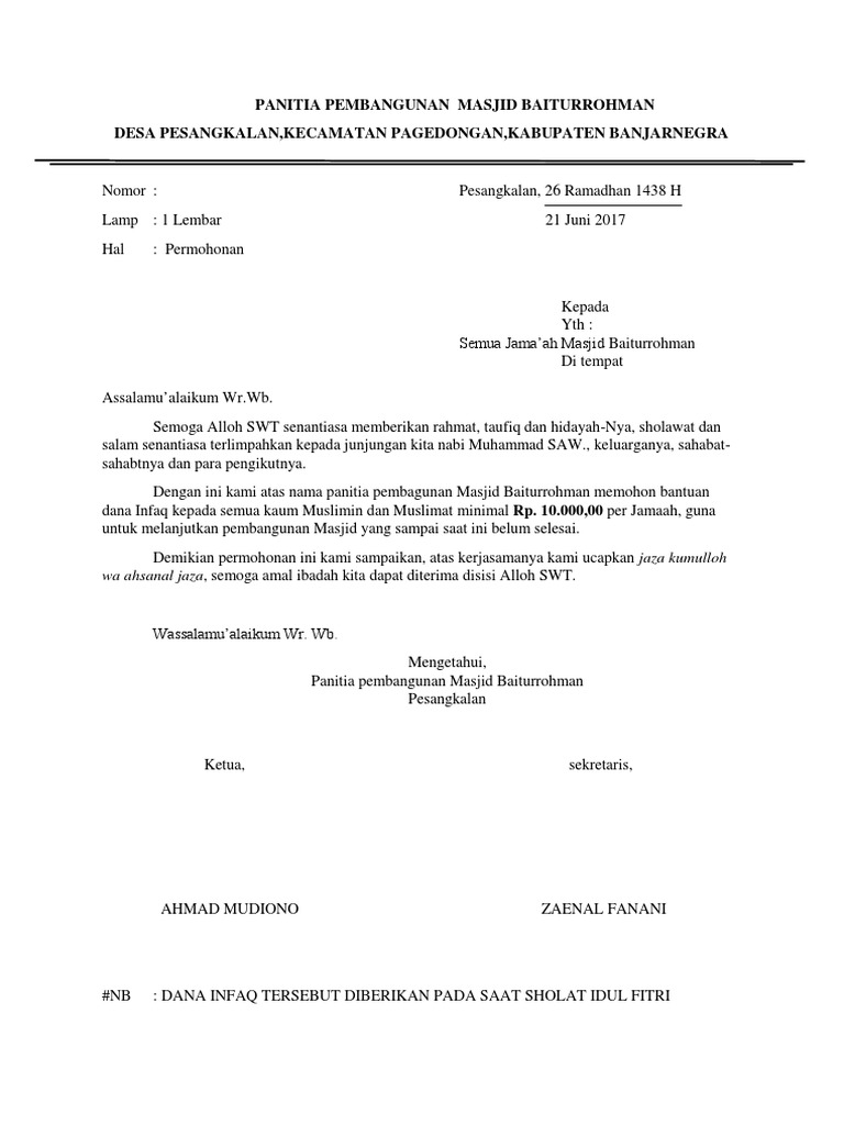 The collection that consisting of chosen picture and the best amongst others. Contoh surat permohonan zakat infaq dan shodaqoh yang sopan. Rangka menjaga kebersihan serta kenyamanan lingkungan sumberasih keluarahan kebonagung untuk menyambut datangnya bulan ramadhan 1439 h.