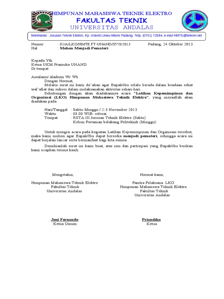 Surat Permohonan Menjadi Pemateri
