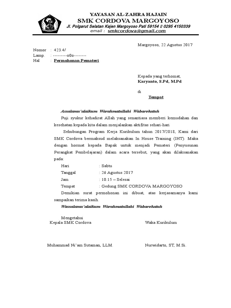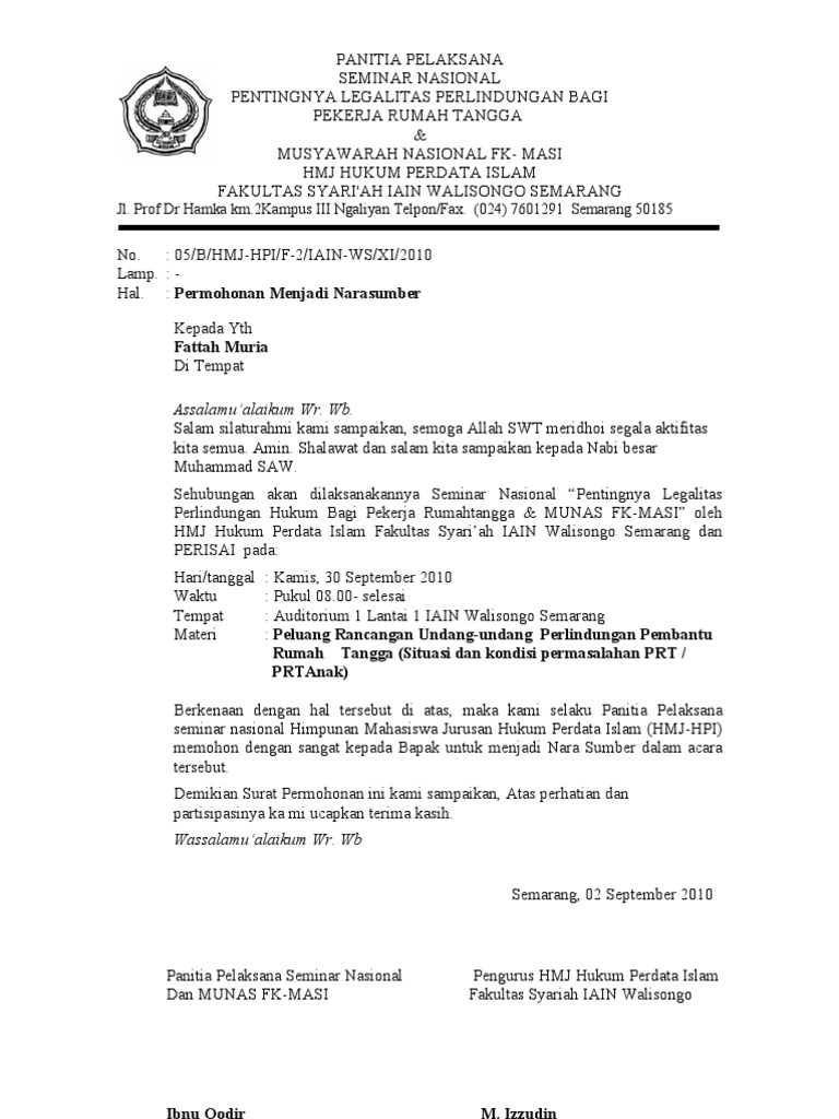 Walde mar Simamor a. Klik untuk memperluas informasi dokumen. Tujuan dibuatnya surat permohonan narasumber ini adalah untuk memohon dan mengundang seseorang yang ahli di dalam bidangnya untuk mengisi acara yang terkait dengan keahlian si.