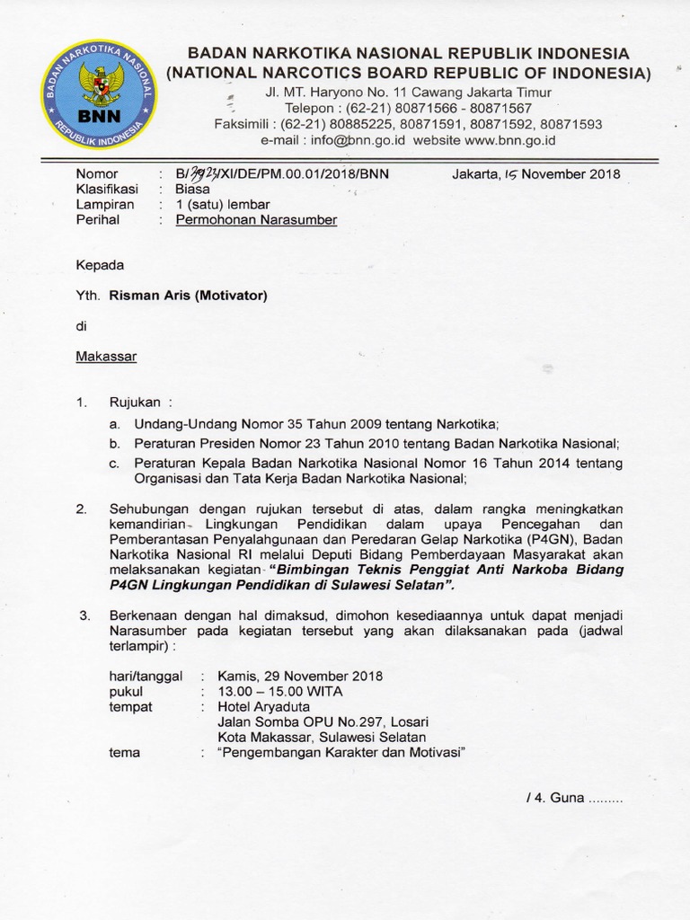 Contoh Surat Permohonan Narasumber Narkoba