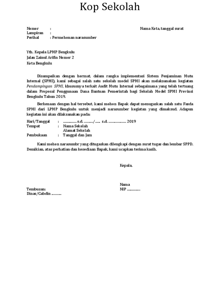 Contoh Surat Permohonan Narasumber